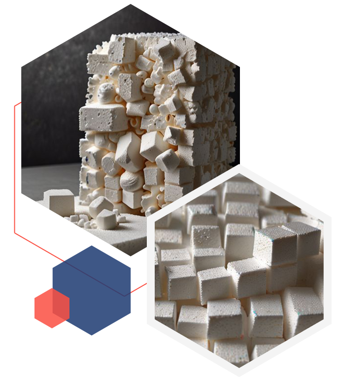 • کاربرد: عایقهای حرارتی در ساختوساز، بستهبندی تجهیزات حساس و تولید بلوکهای ساختمانی.